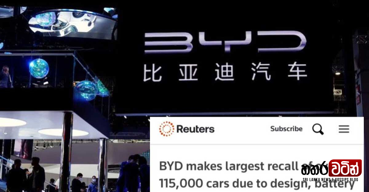 චීනයේ නිශ්පාදනය කරන BYD විදුලි වාහන 115,000 හදිසියේම නැවත කැදවීමට එම සමාගම තීරණය කර තිබේ. සැලසුමේ දෝෂ (Design Defects) සහ බැටරි ආරක්ෂාව පිළිබඳ අවදානම් ( battery safety risks) මෙලෙස වාහන යලි කැඳවා තිබේ.